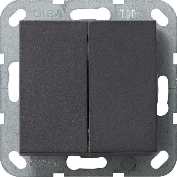 Переключатель 2-клавишный кнопочный Gira SYSTEM 55, скрытый монтаж, антрацит, 012828